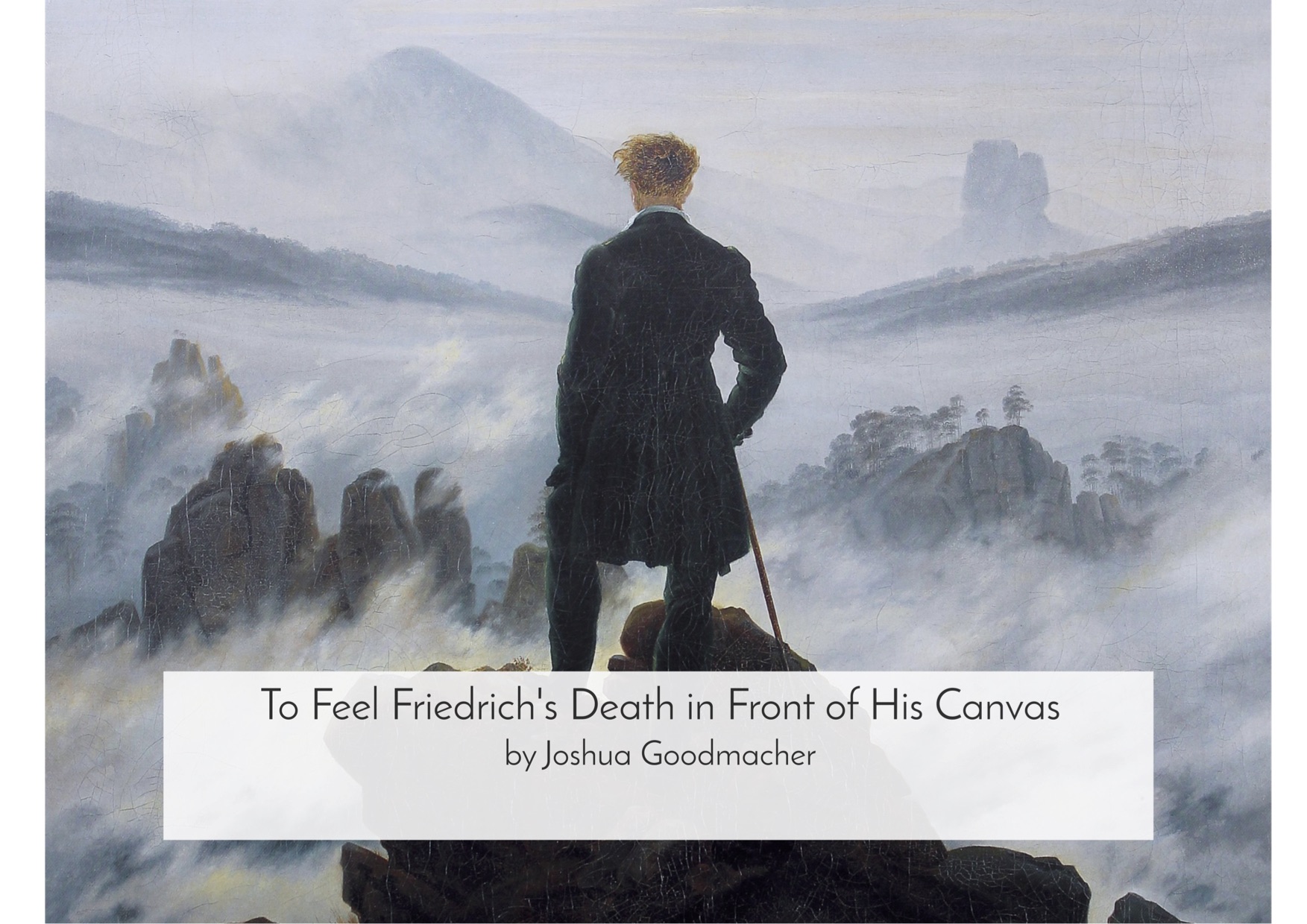 feelings that Friedrich’s work forces one to confront while, because of an education in Art History, experiencing his work through a biographical and critical lens. It is a poem about the conflict between experiencing an artists work emotionally and viewing it through a critical analytic lens, to finally answer the question, which is the correct way to view art? “it is both.”